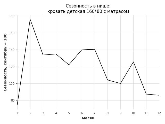 Сезонность в нише слабая. Пик сезонных продаж в нише - сентябрь. В ближайшие месяцы можно ожидать сезонного спада продаж до 36%.