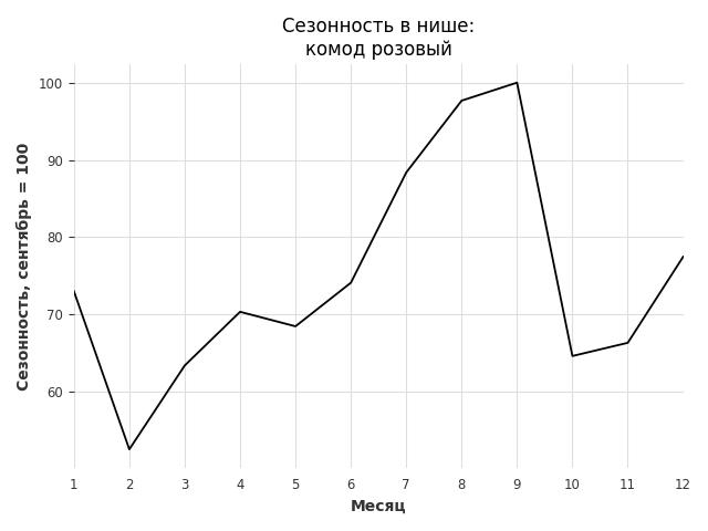 Сезонность в нише средняя. Пик сезонных продаж в нише - февраль. В ближайшие месяцы сезонность не будет заметно влиять на продажи.