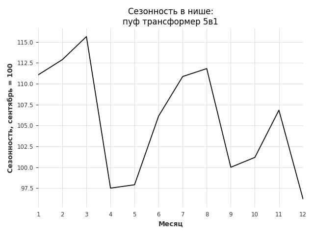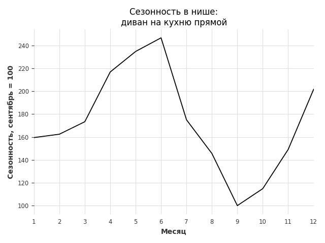 Сезонность в нише средняя. Пик сезонных продаж в нише - июнь. В ближайшие месяцы можно ожидать сезонного роста продаж до 101%.