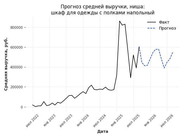 - Прогноз средней выручки в нише на следующие 12 месяцев: 484559 руб./месяц