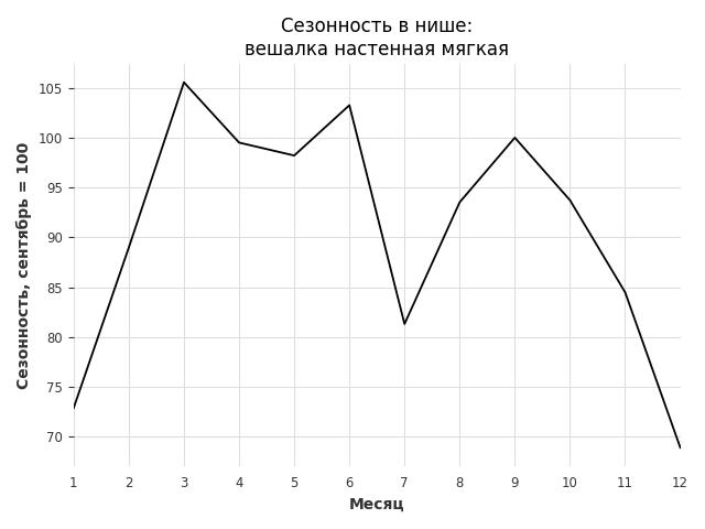 Сезонность в нише слабая. Пик сезонных продаж в нише - ноябрь. В ближайшие месяцы сезонность не будет заметно влиять на продажи.