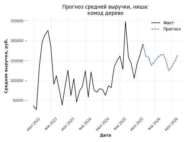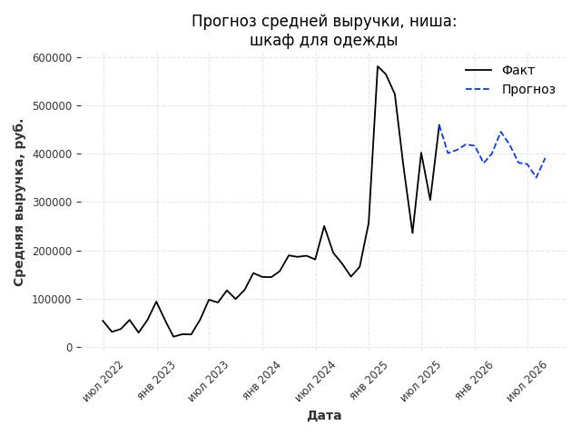 - Прогноз средней выручки в нише на следующие 12 месяцев: 150703 руб./месяц