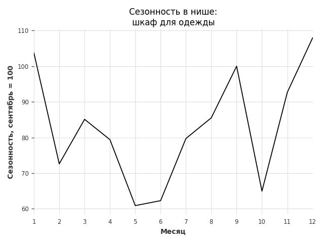 Сезонность в нише средняя. Пик сезонных продаж в нише - декабрь. В ближайшие месяцы сезонность не будет заметно влиять на продажи.