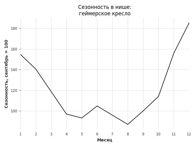 Сезонность в нише средняя. Пик сезонных продаж в нише - август. В ближайшие месяцы сезонность не будет заметно влиять на продажи.