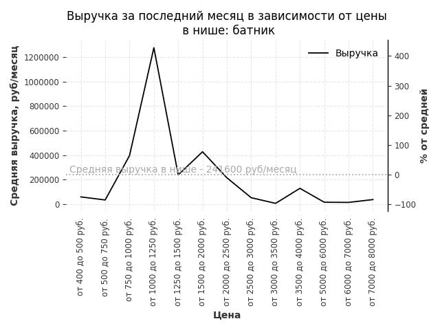 Выручка в нише в зависимости от цены