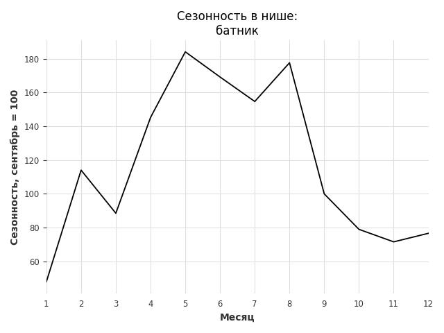 Сезонность в нише средняя. Пик сезонных продаж в нише - июнь. В ближайшие месяцы сезонность не будет заметно влиять на продажи.