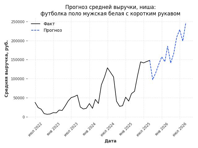 - Прогноз изменения средней выручки: 85166 руб.