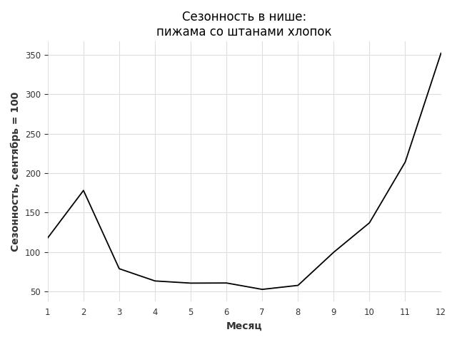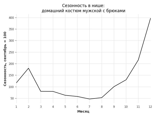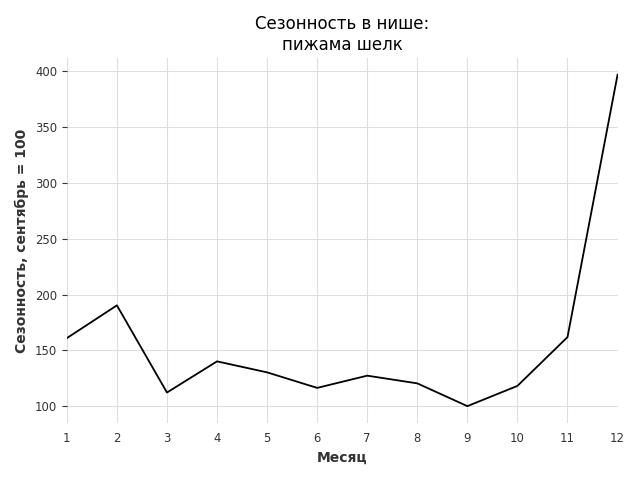 Сезонность в нише сильная. Пик сезонных продаж в нише - декабрь. В ближайшие месяцы можно ожидать сезонного роста продаж до 297%.