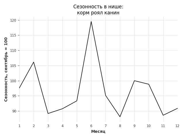 Сезонность в нише слабая. Пик сезонных продаж в нише - июнь. В ближайшие месяцы сезонность не будет заметно влиять на продажи.
