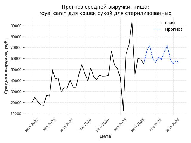 - Прогноз средней выручки в нише на следующие 12 месяцев: 77737 руб./месяц