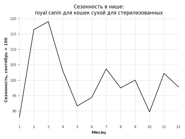 Сезонность в нише слабая. Пик сезонных продаж в нише - январь. В ближайшие месяцы сезонность не будет заметно влиять на продажи.