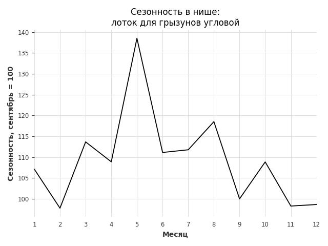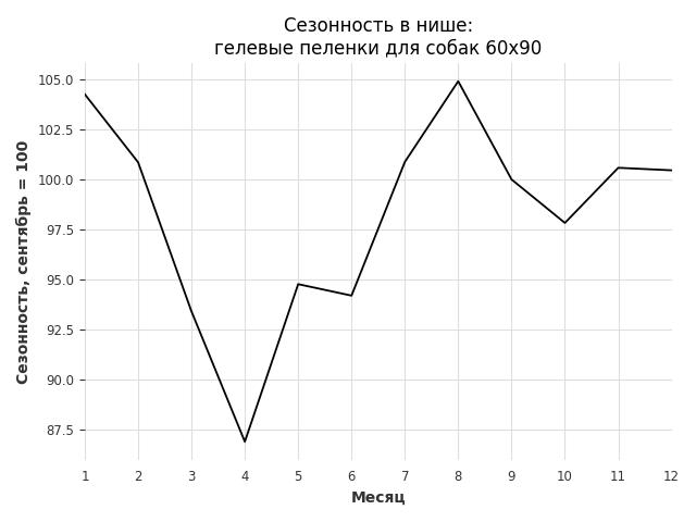 Сезонность в нише слабая. Пик сезонных продаж в нише - октябрь. В ближайшие месяцы сезонность не будет заметно влиять на продажи.