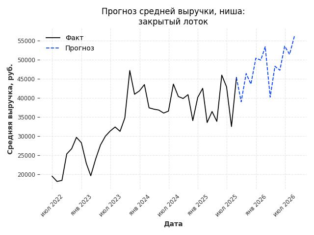 - Прогноз средней выручки на ближайшие 12 месяцев: 48343 руб./месяц