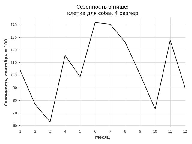 Сезонность в нише средняя. Пик сезонных продаж в нише - июнь. В ближайшие месяцы сезонность не будет заметно влиять на продажи.
