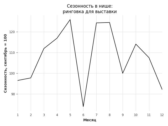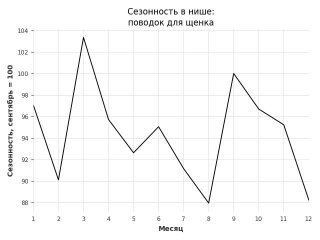 Сезонность в нише слабая. Пик сезонных продаж в нише - март. В ближайшие месяцы можно ожидать сезонного спада продаж до 21%.