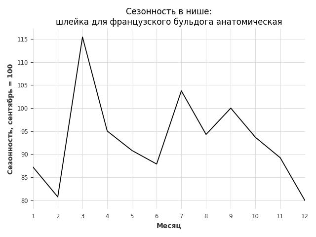 Сезонность в нише слабая. Пик сезонных продаж в нише - март. В ближайшие месяцы сезонность не будет заметно влиять на продажи.