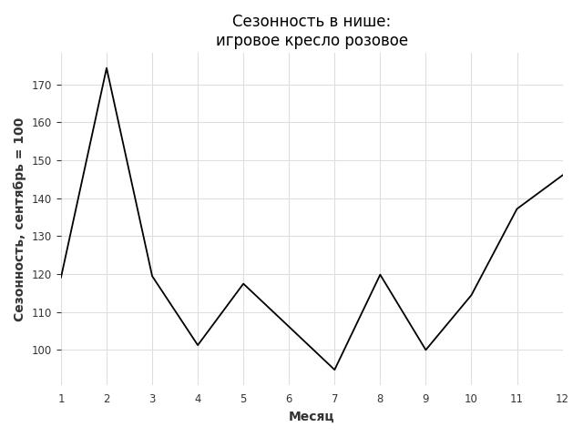 Сезонность в нише слабая. Пик сезонных продаж в нише - февраль. В ближайшие месяцы можно ожидать сезонного роста продаж до 46%.