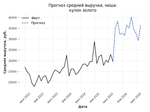 - Прогноз изменения средней выручки: 13943 руб.