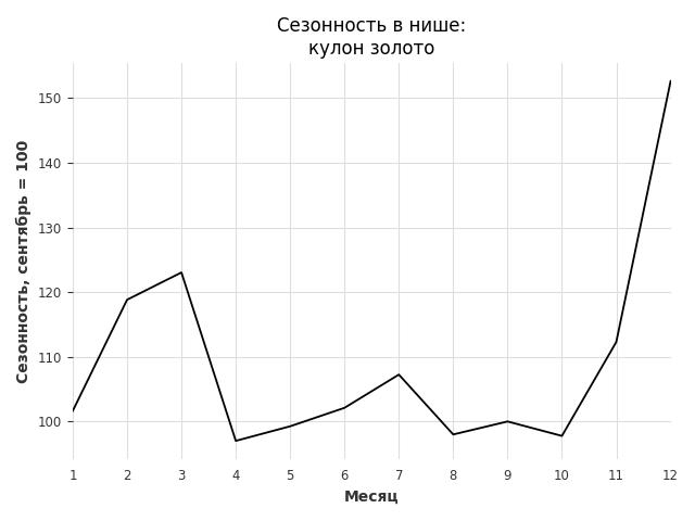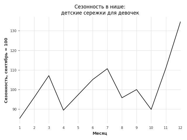 Сезонность в нише слабая. Пик сезонных продаж в нише - декабрь. В ближайшие месяцы можно ожидать сезонного роста продаж до 34%.