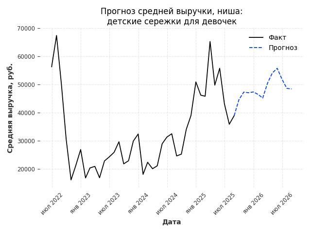 - Прогноз средней выручки в нише на следующие 12 месяцев: 163863 руб./месяц