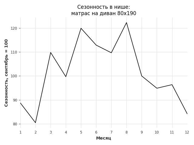 Сезонность в нише слабая. Пик сезонных продаж в нише - август. В ближайшие месяцы сезонность не будет заметно влиять на продажи.