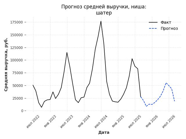 - Прогноз средней выручки в нише на следующие 12 месяцев: 27204 руб./месяц