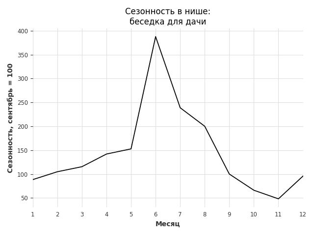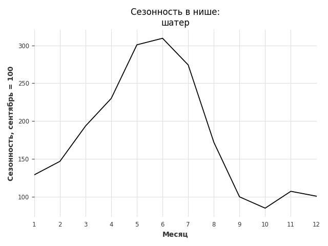 Сезонность в нише сильная. Пик сезонных продаж в нише - июнь. В ближайшие месяцы можно ожидать сезонного спада продаж до 52%.