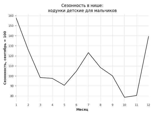 Сезонность в нише средняя. Пик сезонных продаж в нише - январь. В ближайшие месяцы сезонность не будет заметно влиять на продажи.
