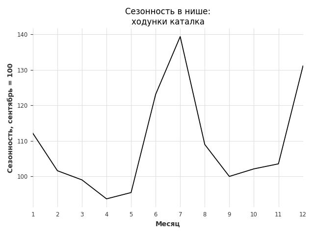 Сезонность в нише слабая. Пик сезонных продаж в нише - июль. В ближайшие месяцы можно ожидать сезонного роста продаж до 31%.
