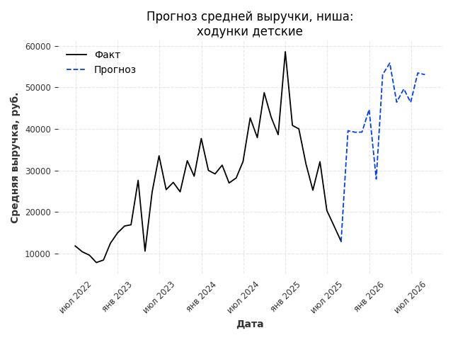 - Прогноз средней выручки в нише на следующие 12 месяцев: 45695 руб./месяц