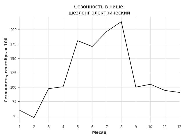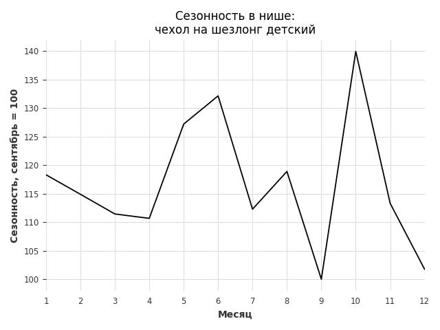 Сезонность в нише слабая. Пик сезонных продаж в нише - октябрь. В ближайшие месяцы можно ожидать сезонного роста продаж до 39%.