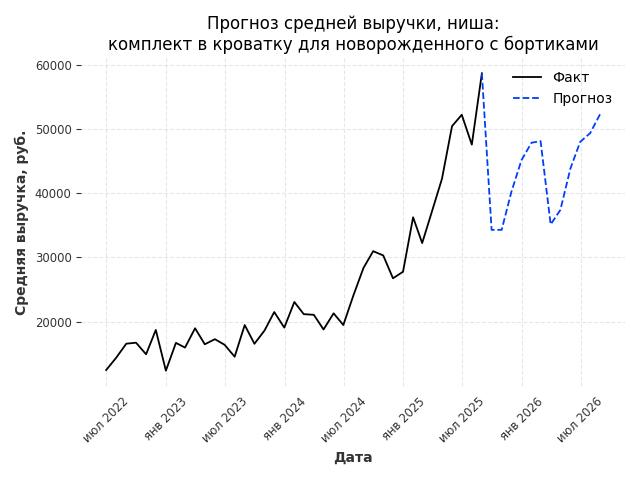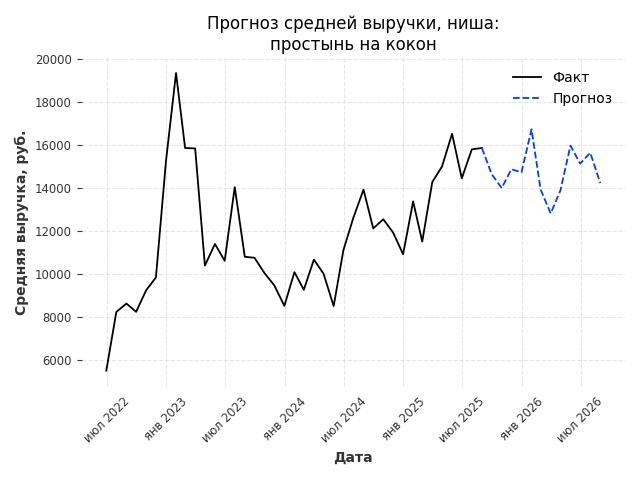 - Прогноз средней выручки в нише на следующие 12 месяцев: 42999 руб./месяц