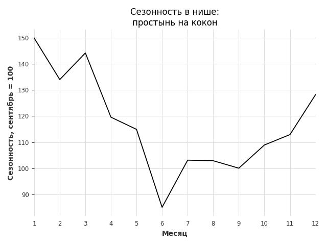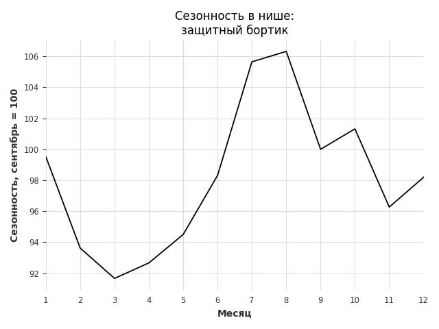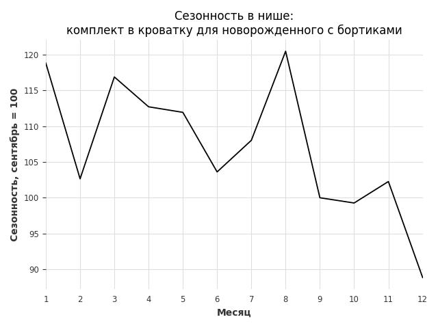 Сезонность в нише слабая. Пик сезонных продаж в нише - январь. В ближайшие месяцы можно ожидать сезонного роста продаж до 28%.