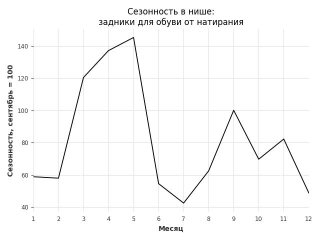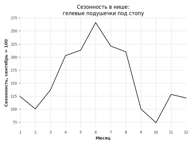 Сезонность в нише сильная. Пик сезонных продаж в нише - июнь. В ближайшие месяцы сезонность не будет заметно влиять на продажи.