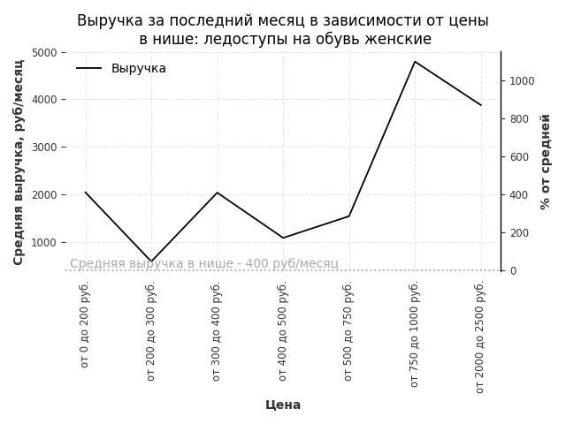 Выручка в нише в зависимости от цены