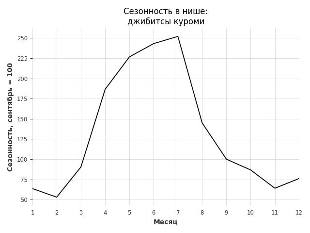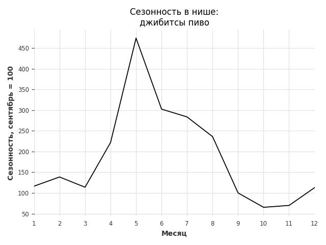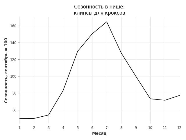 Сезонность в нише сильная. Пик сезонных продаж в нише - май. В ближайшие месяцы можно ожидать сезонного спада продаж до 35%.