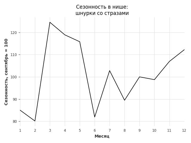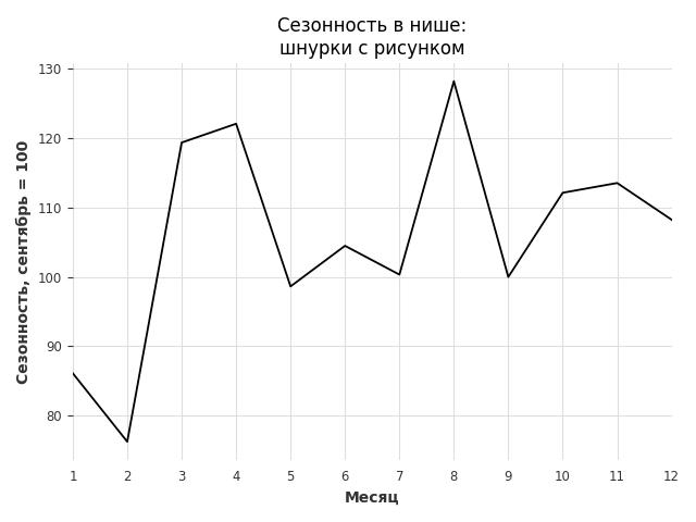 Сезонность в нише слабая. Пик сезонных продаж в нише - август. В ближайшие месяцы можно ожидать сезонного роста продаж до 13%.