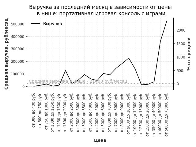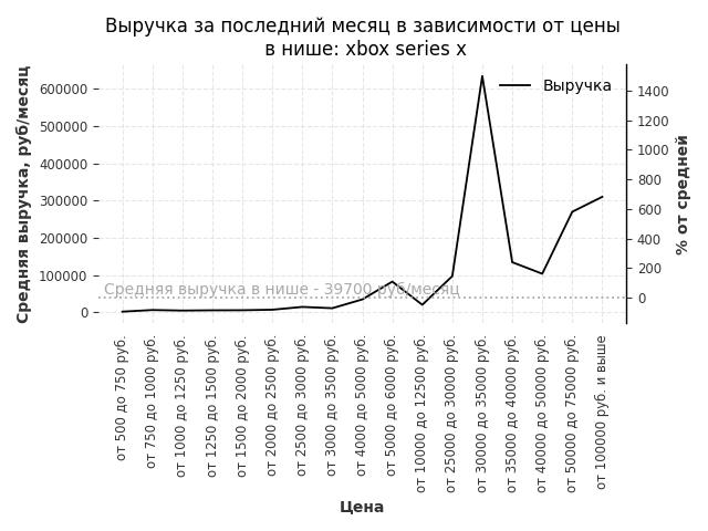 Выручка в нише в зависимости от цены