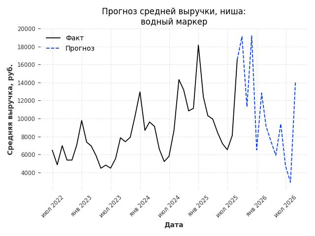 - Прогноз средней выручки на ближайшие 12 месяцев: 10878 руб./месяц