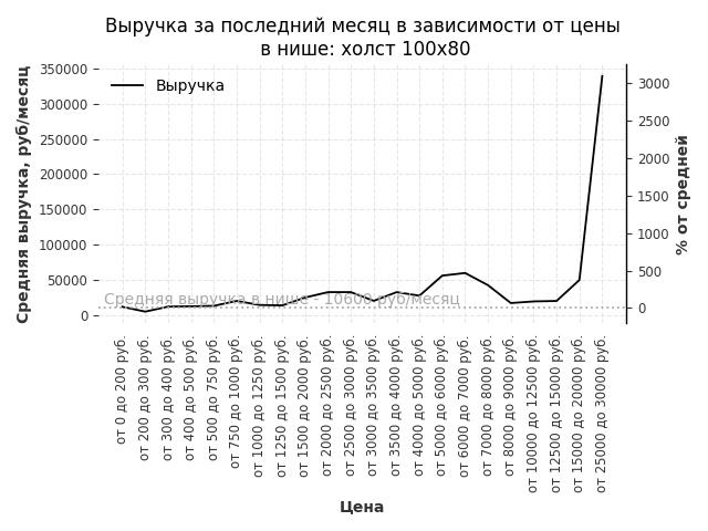 Выручка в нише в зависимости от цены