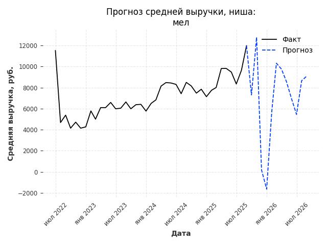 - Прогноз средней выручки в нише на следующие 12 месяцев: 10841 руб./месяц