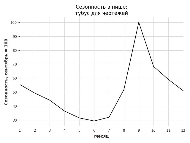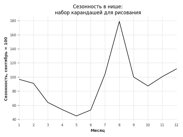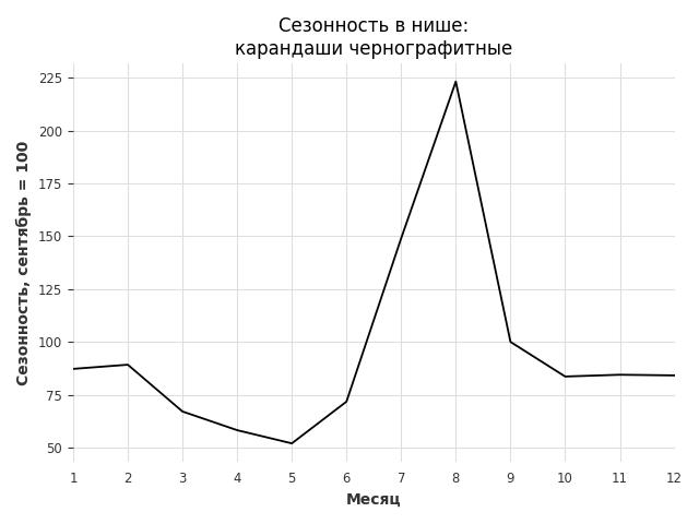 Сезонность в нише сильная. Пик сезонных продаж в нише - сентябрь. В ближайшие месяцы можно ожидать сезонного спада продаж до 50%.