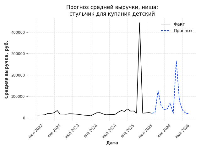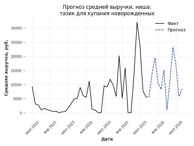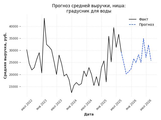 - Прогноз изменения средней выручки: 13 руб.