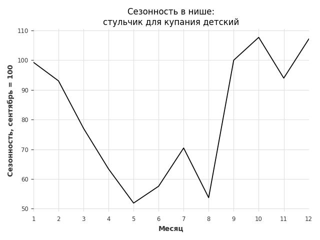 Сезонность в нише средняя. Пик сезонных продаж в нише - октябрь. В ближайшие месяцы сезонность не будет заметно влиять на продажи.
