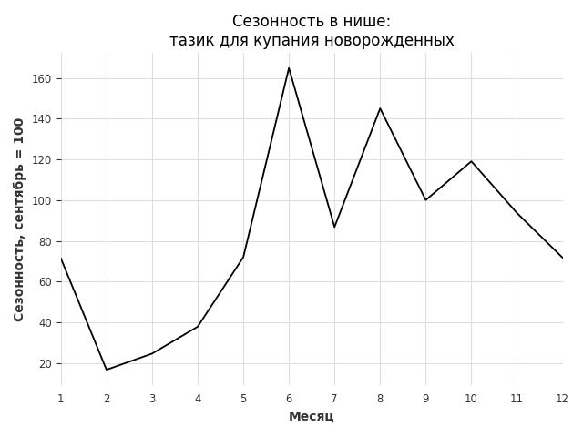 Сезонность в нише сильная. Пик сезонных продаж в нише - июнь. В ближайшие месяцы сезонность не будет заметно влиять на продажи.