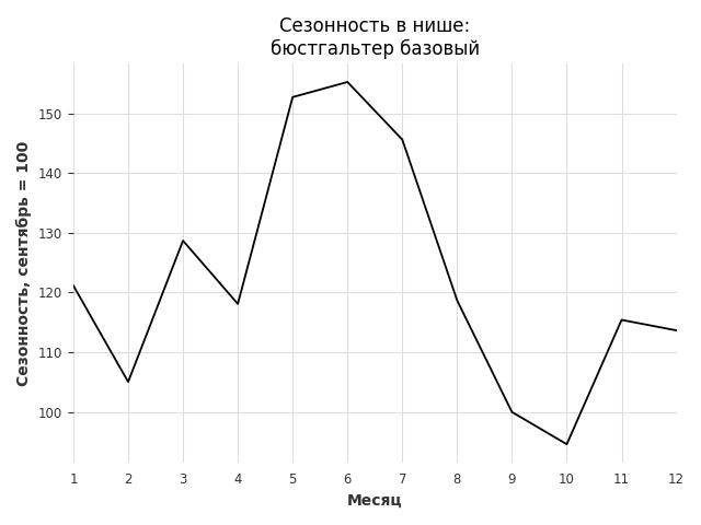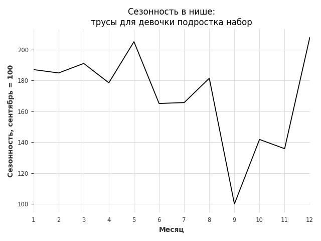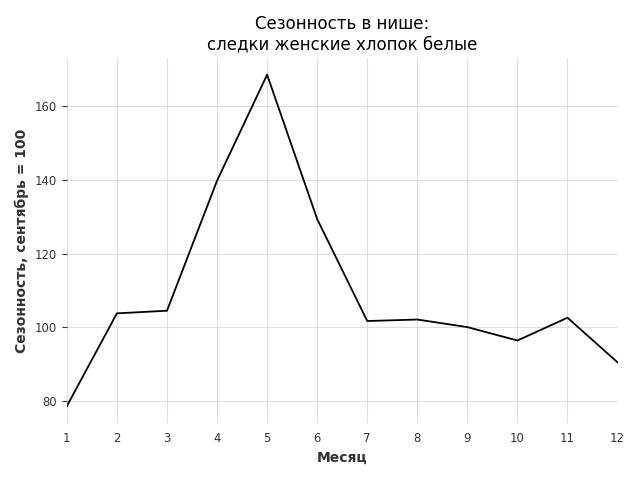 Сезонность в нише средняя. Пик сезонных продаж в нише - май. В ближайшие месяцы сезонность не будет заметно влиять на продажи.