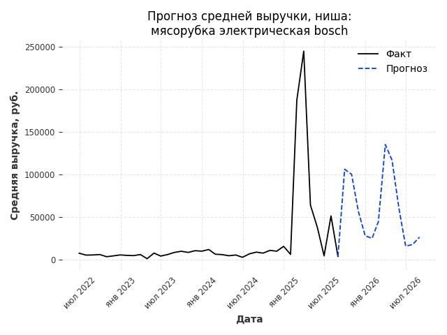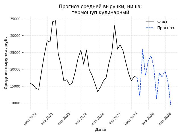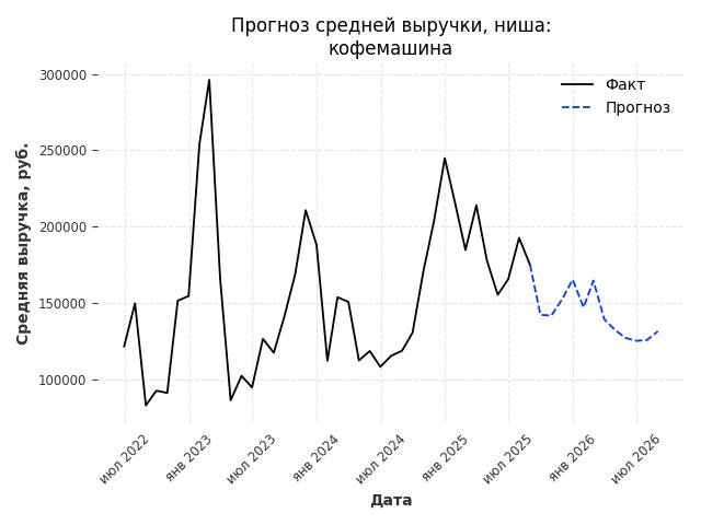 - Прогноз средней выручки в нише на следующие 12 месяцев: 141390 руб./месяц