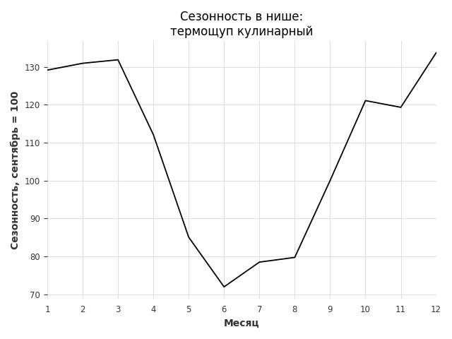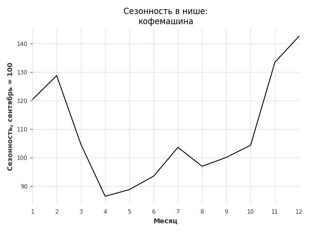 Сезонность в нише слабая. Пик сезонных продаж в нише - декабрь. В ближайшие месяцы можно ожидать сезонного роста продаж до 42%.