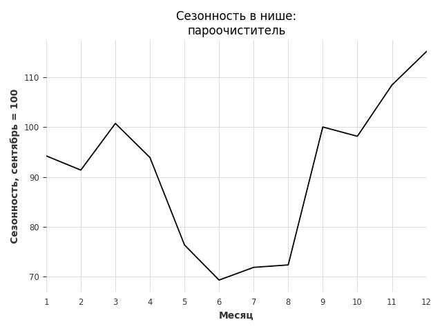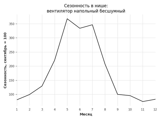 Сезонность в нише слабая. Пик сезонных продаж в нише - декабрь. В ближайшие месяцы сезонность не будет заметно влиять на продажи.