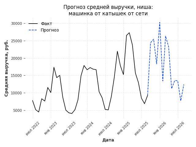 - Прогноз средней выручки в нише на следующие 12 месяцев: 77998 руб./месяц